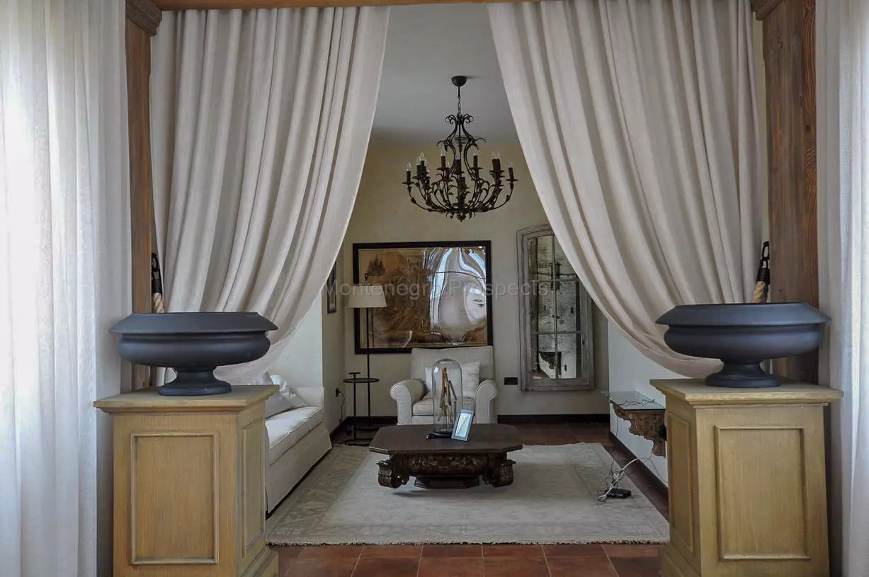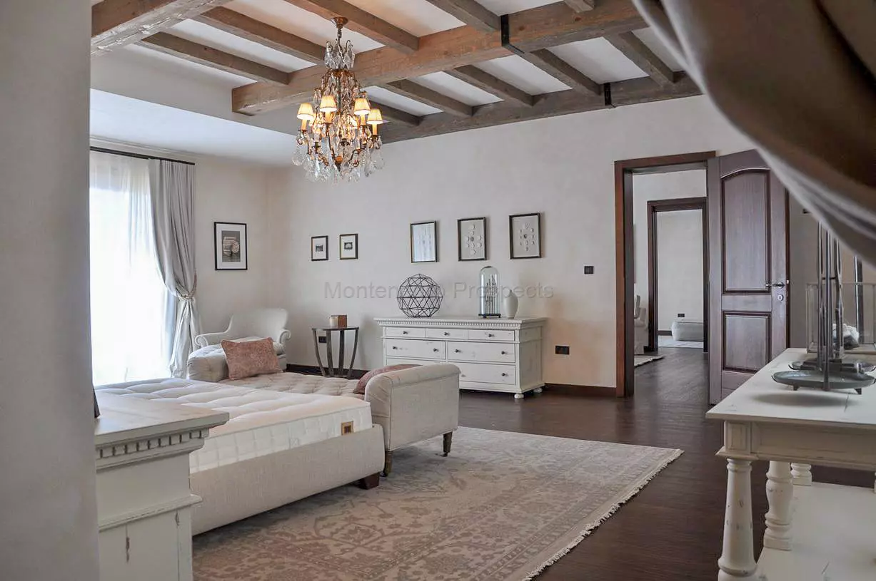 Veliki plac, koji obuhvata I hrastovu šumu u zaleđu kuće nude za Crnogorske prilike retku kompoziciju privatnosti I harmonije sa prirodom uz istovremeno osećanje povlašćenosti I prestiža.