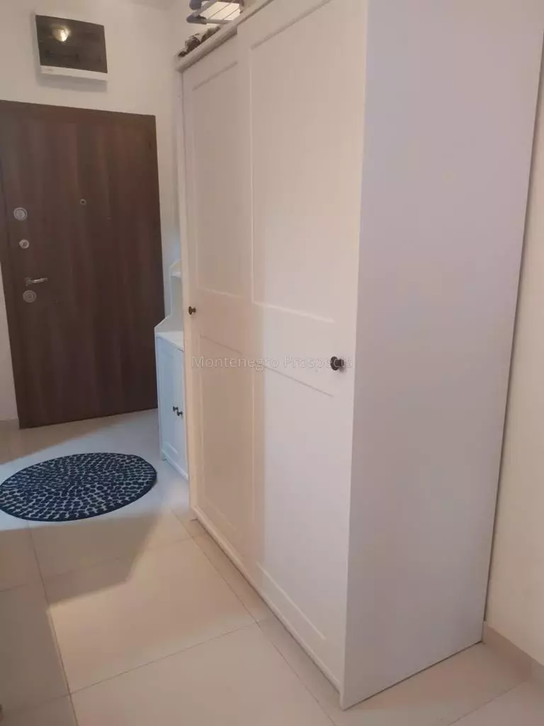 Stan ima funkcionalan raspored i udobnost pogodnu kako za kraći tako i za duži boravak. Sastoji se od ulaznog hodnika sa velikim ugradnim ormarima, kupatila, kuhinje po mjeri koja je šankom odvojena od dnevnog boravka. U potpunosti je namješten, opremljen svim potrebnim uređajima i spreman za useljenje bez dodatnih ulaganja.