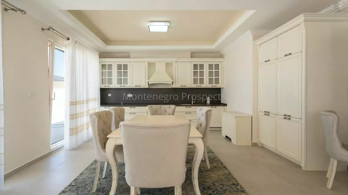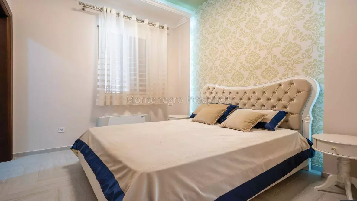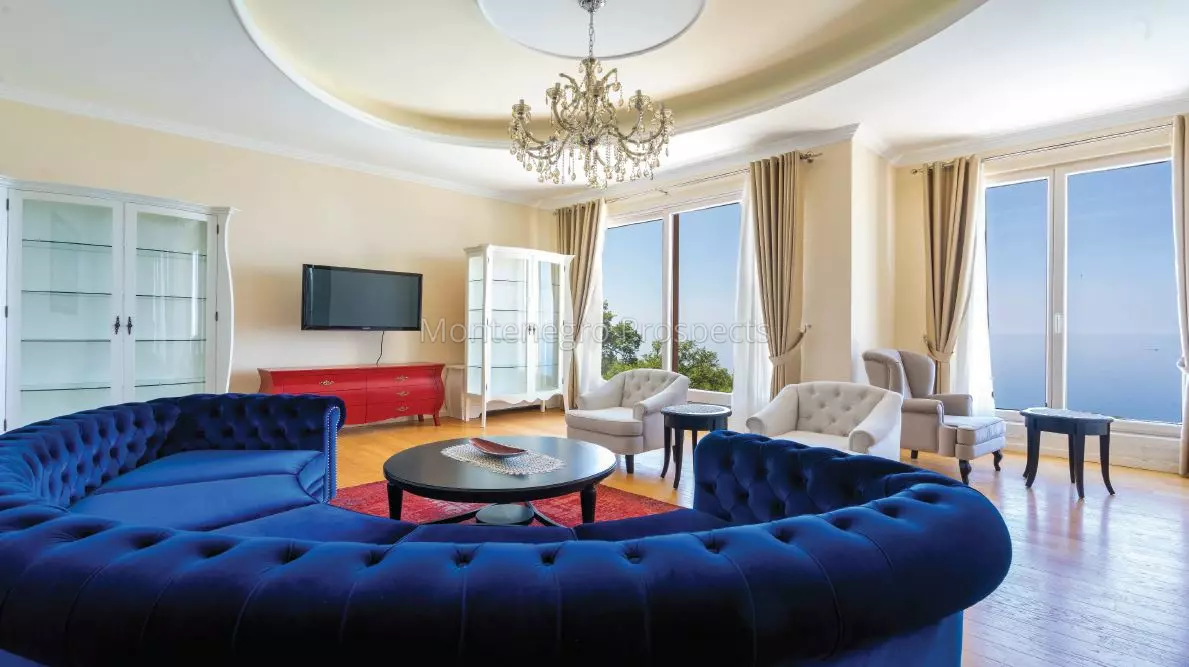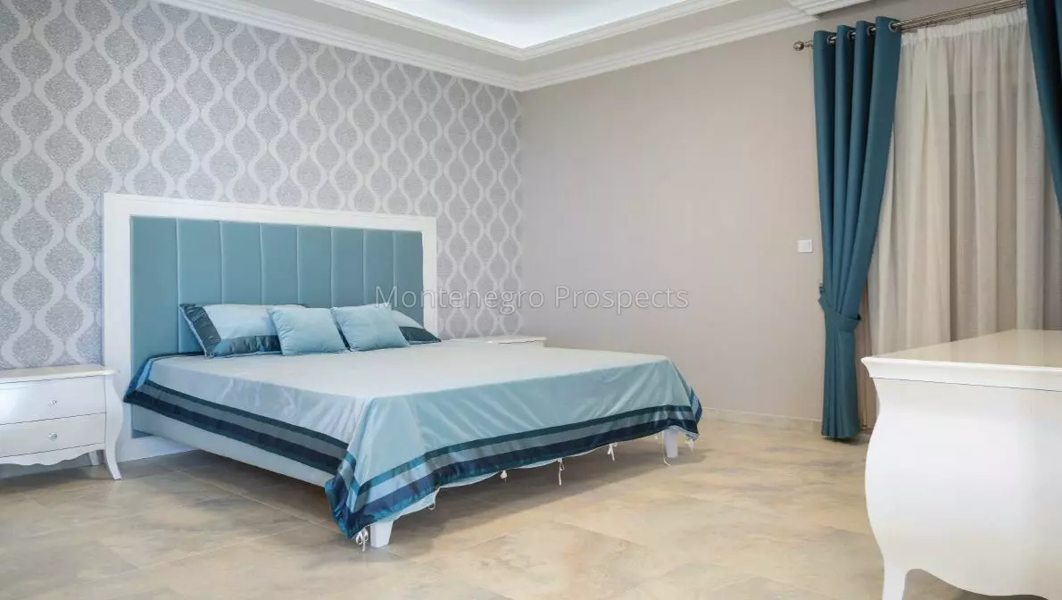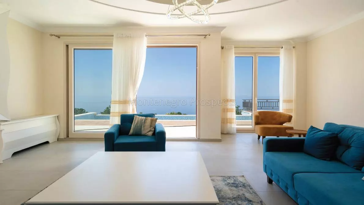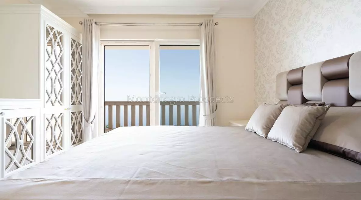 Tri prostrane spavaće sobe sa sopstvenim kupatilima su na gornjem spratu, dve spavaće sobe imaju izlaz na veliku terasu sa fantastičnim pogledom na more.